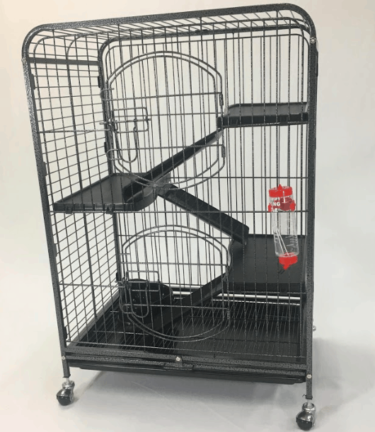 The Cooper Ferret Cage is perfect for 1 pet ferret. The cage comes complete with 4 levels (including the base), safety ramps, feeding bowl, drink bottle, pullout plastic tray for easy cleaning and wheels for easy mobility. It includes 2 main doors for easy cleaning and when closed are very secure keeping your pet safe and secure.