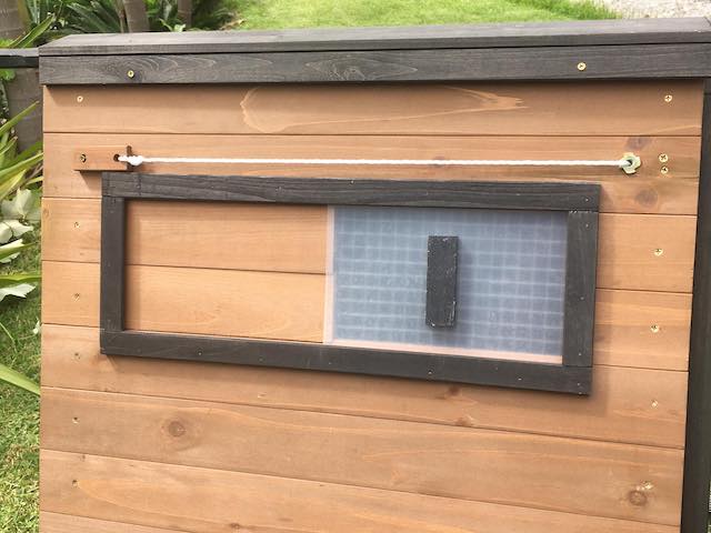 - Door to enclosed area can be open or shut from the outside using the string