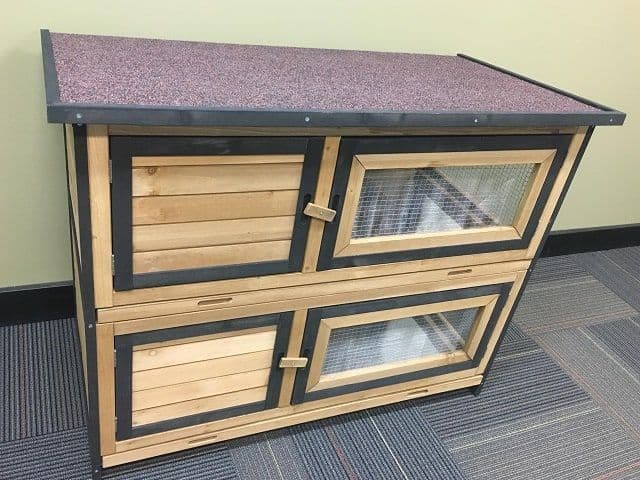 Each bank features stainless steel mosquito screens to keep your little bunny safe. It also has 2 pull out trays for easy cleaning, wire mesh for ventilation and a sheltered area for sleeping and protection from the elements.