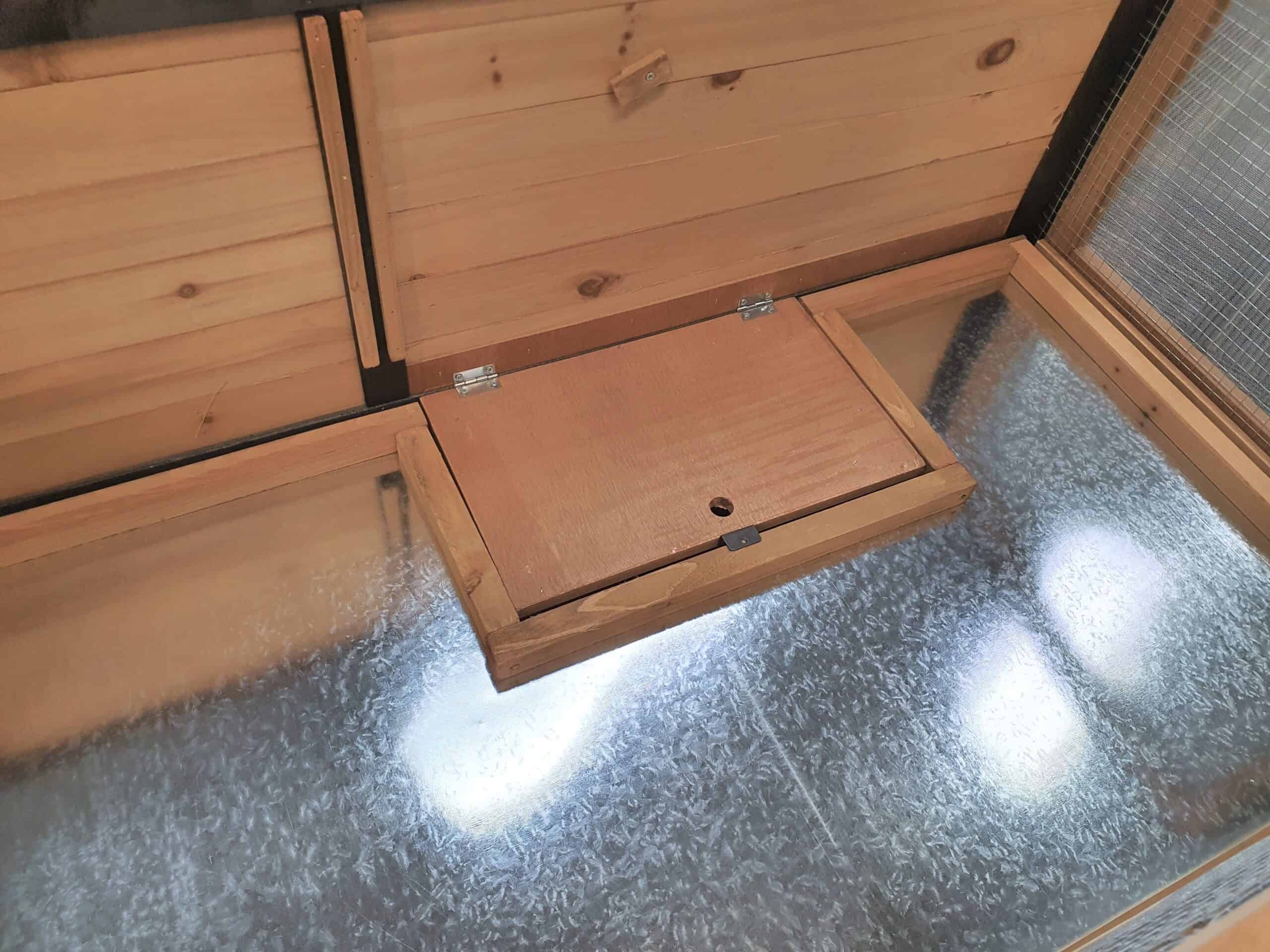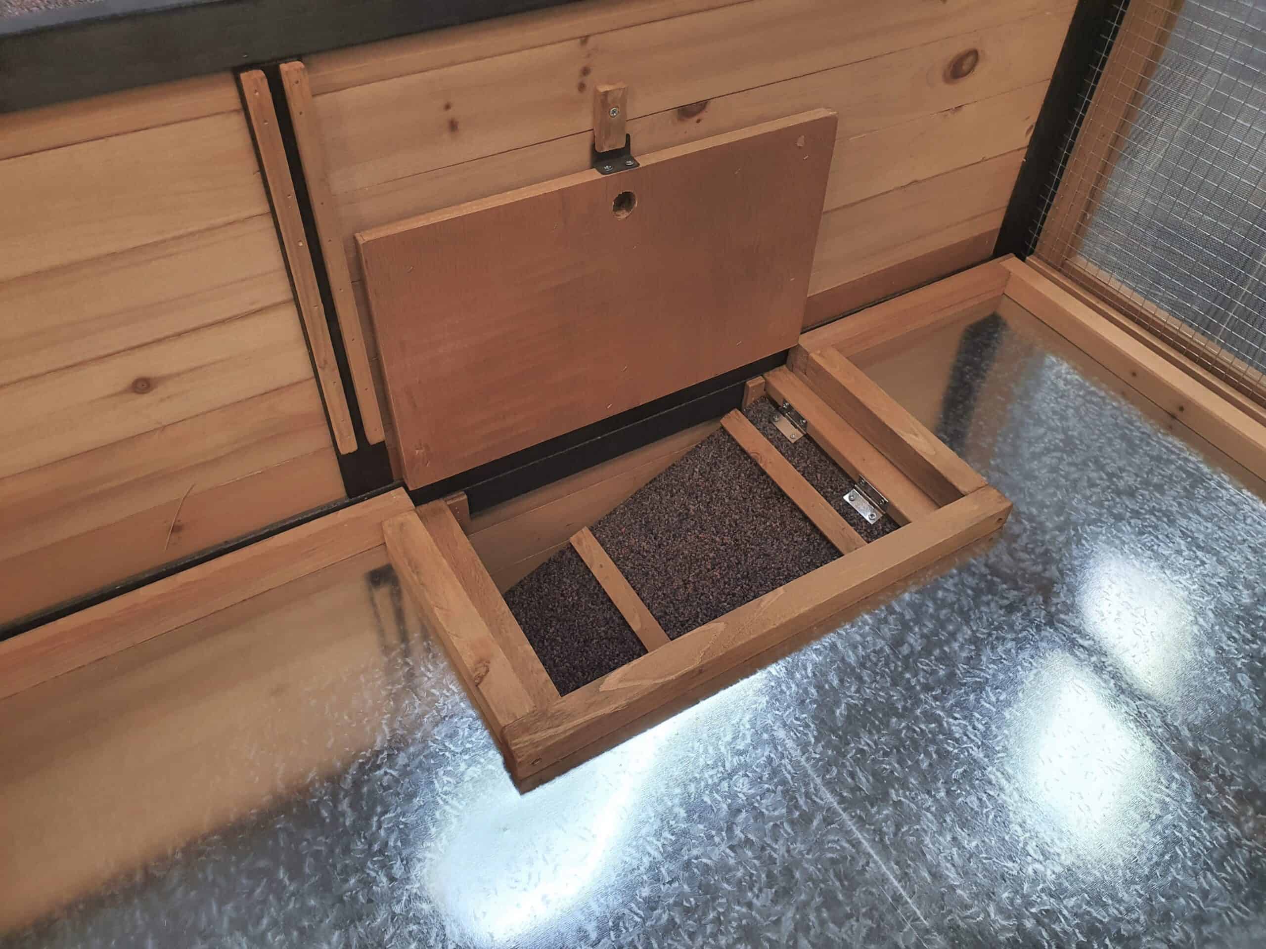 - 2 metal pull-out trays for easy cleaning. Cover trays in absorbent bedding and change regularly.